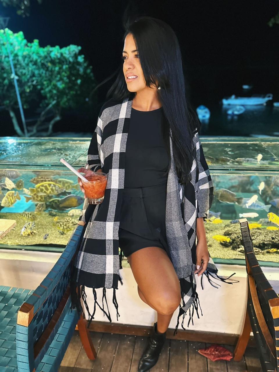 Poncho perfeito. Preto e branco. Dá pra usar de diversas maneiras.
