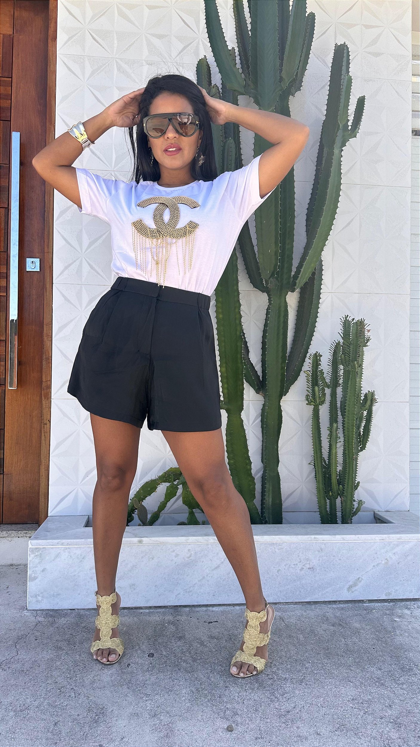 DICAS DE USO: Nosso short largo preto é a peça-chave para o seu guarda-roupa! Use com uma camisa para um look sofisticado, combine com um cropped para um visual casual ou aposte em acessórios para arrasar na noite. Versátil, confortável e super estiloso!